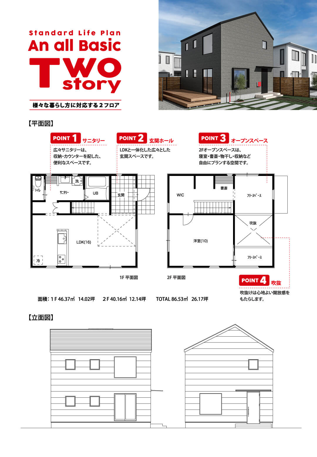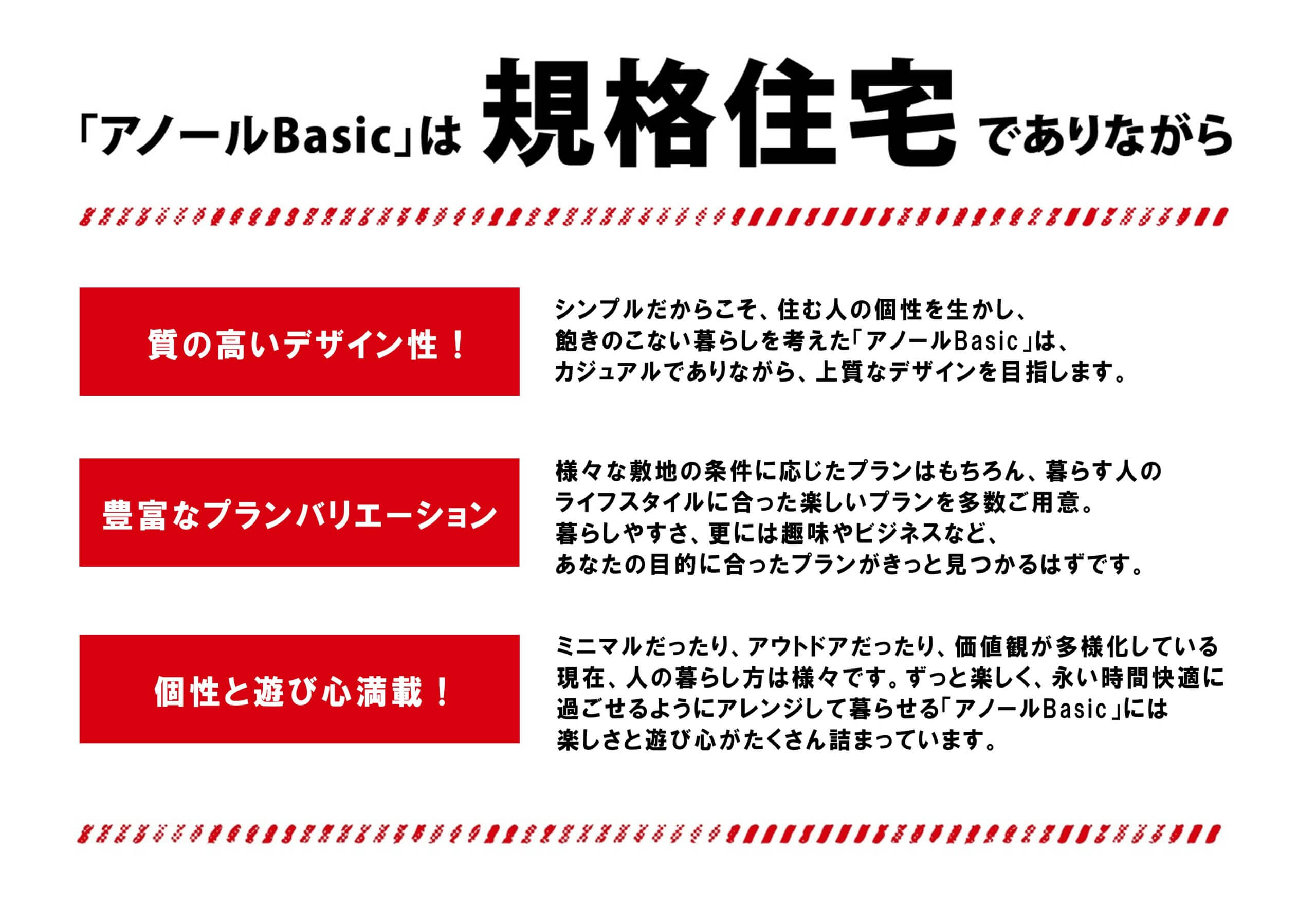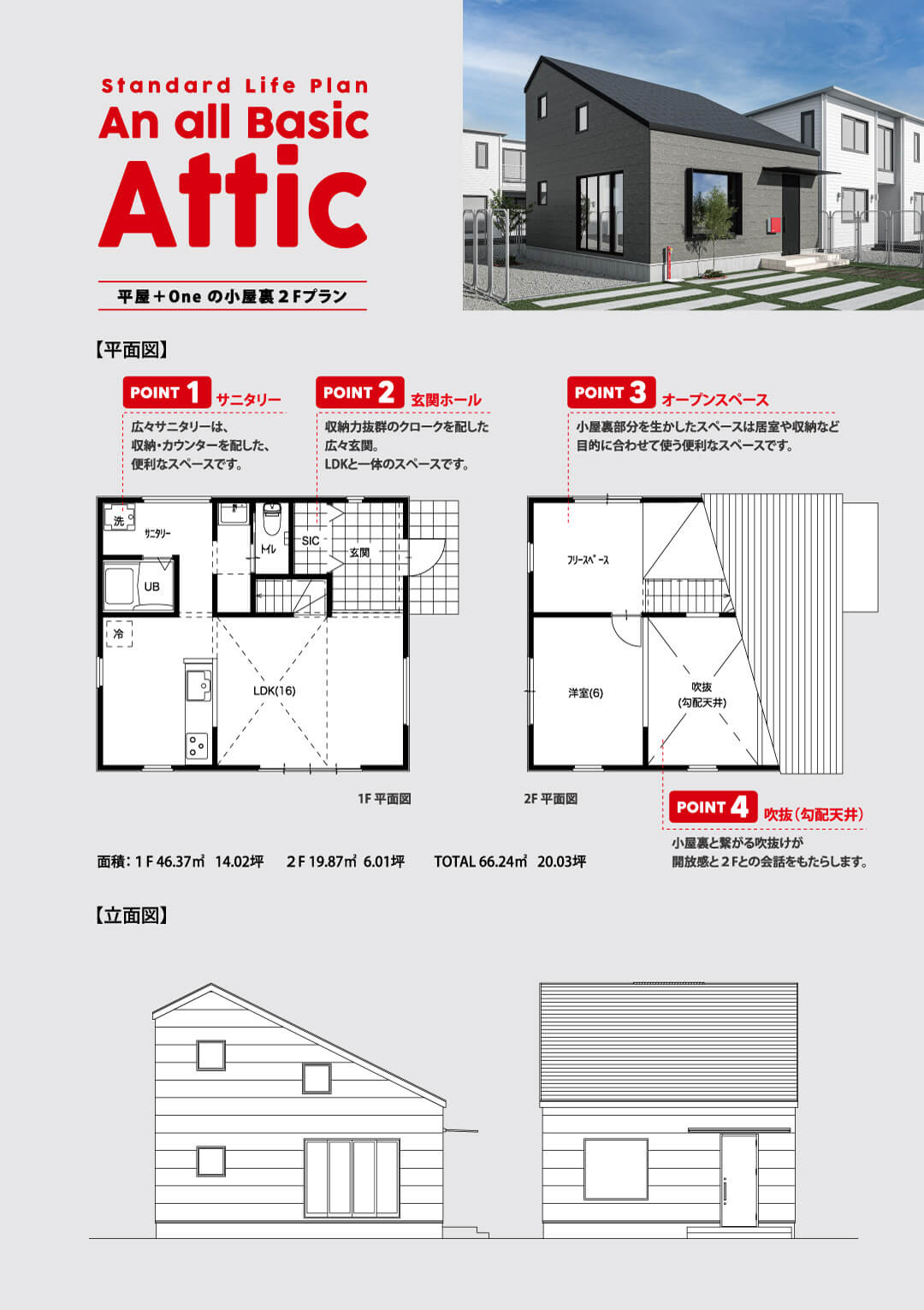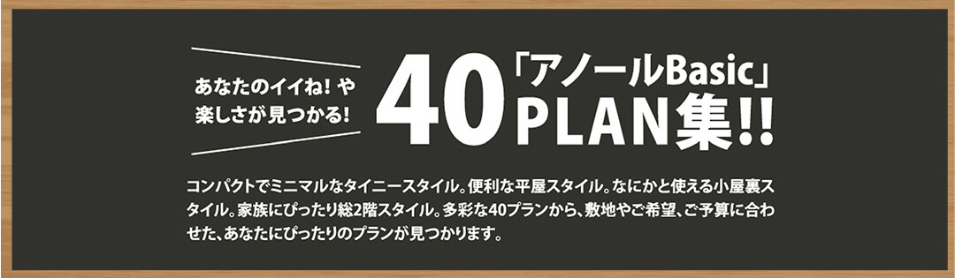 アノールBasicは、10坪以内の小さなタイニーハウスから、平屋、屋根裏を利用した小屋裏2階、コンパクトな2階建てなど、