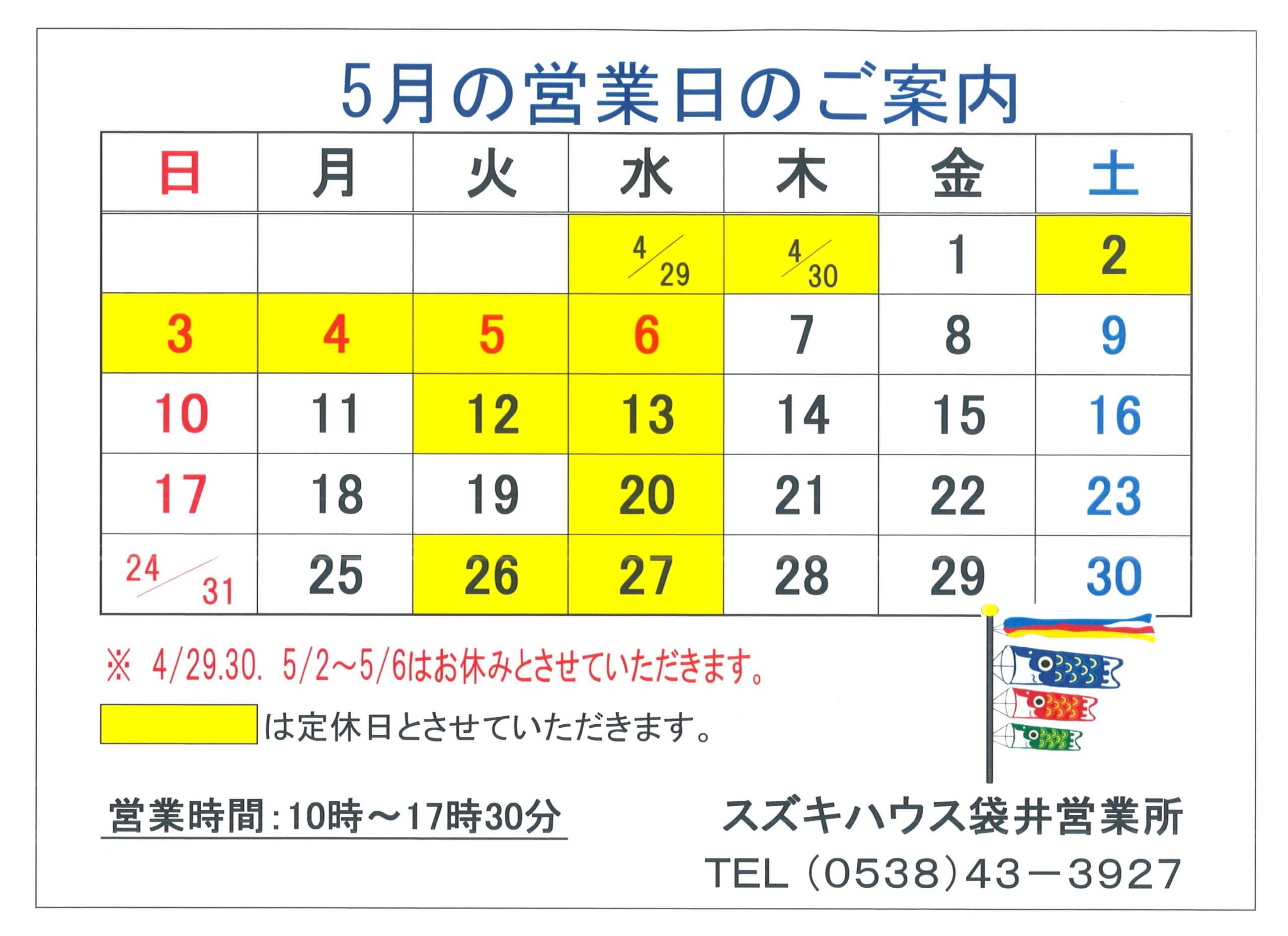GWの時でないと見学に来られない方、5/1は営業しております!