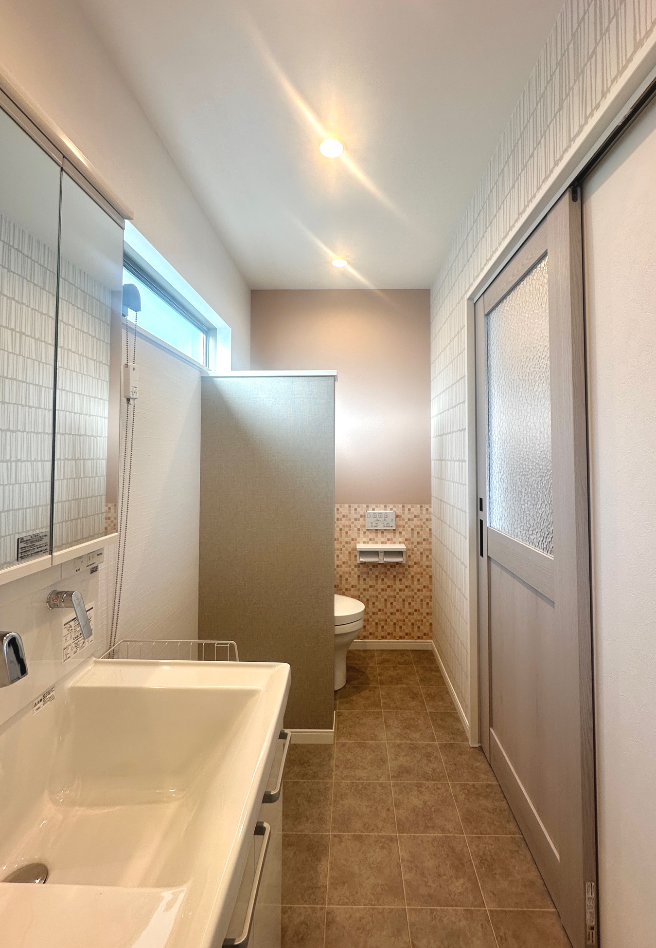 キッチン以外の水まわり(トイレ・洗面化粧台・浴室)は一ヶ所にまとめ動線を簡素化にしました。