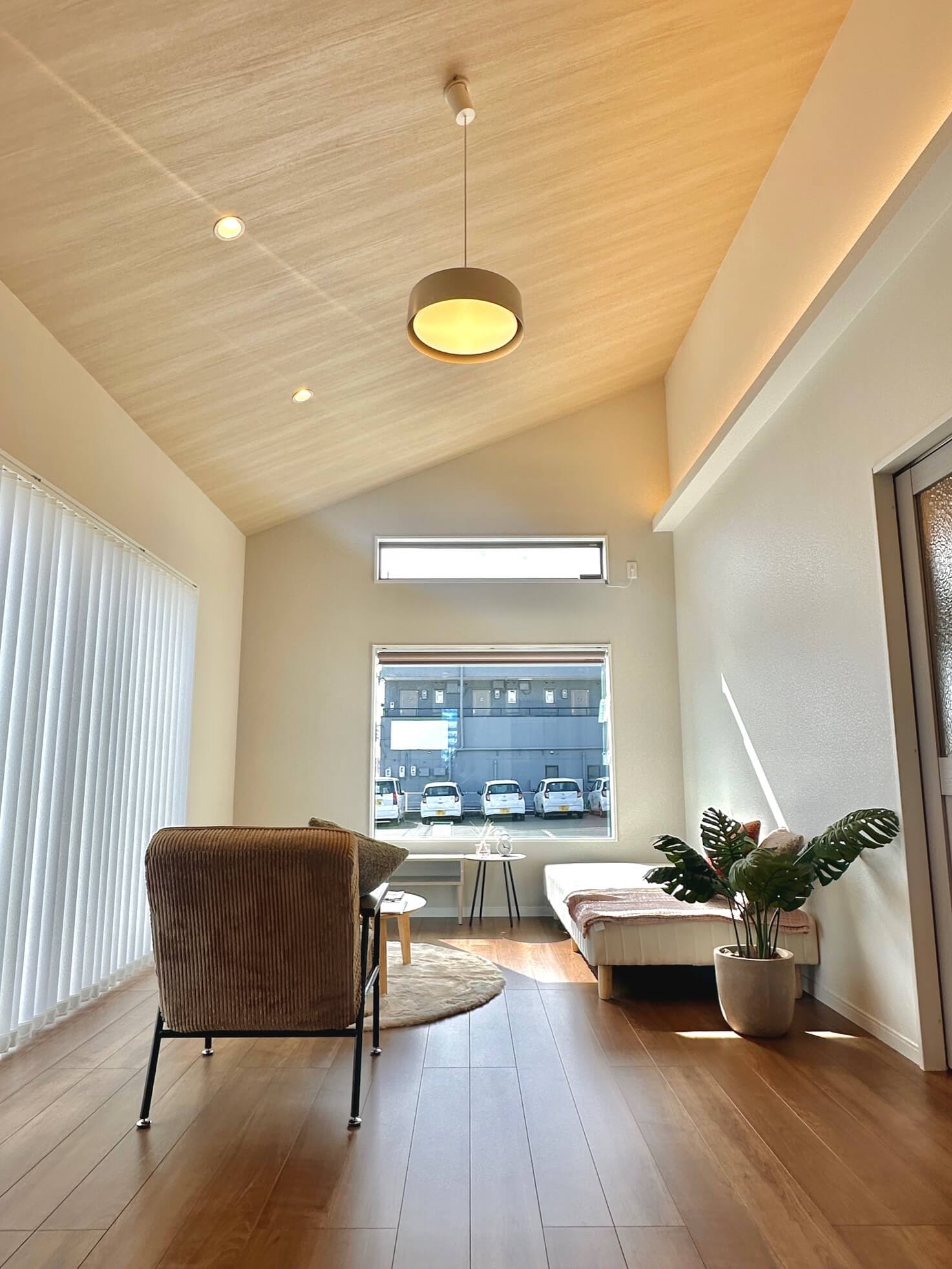 以上、今回は三河営業所モデルハウス「小さいモダムウッド」の勾配天井についてご紹介しました。