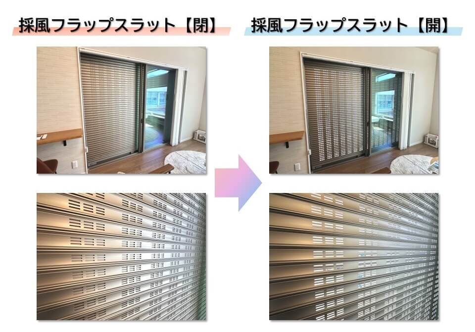 シャッター自体は閉まっているのでプライバシーを防止をしながら採風が可能になりますね!