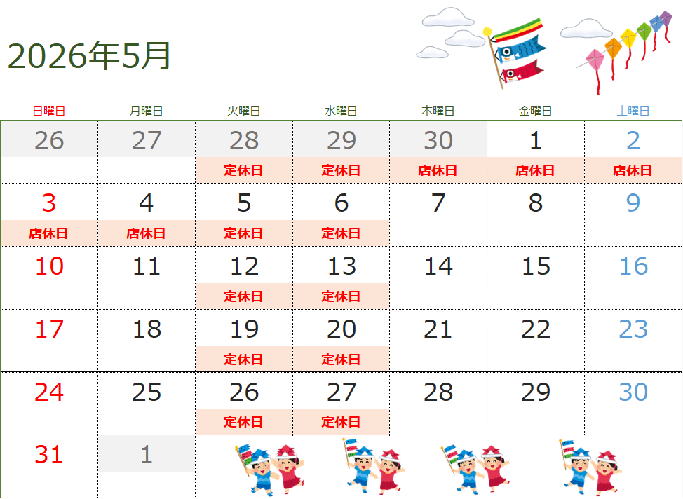 4/29(水・祝)~5/6(水・祝) の間お休みを頂きます。