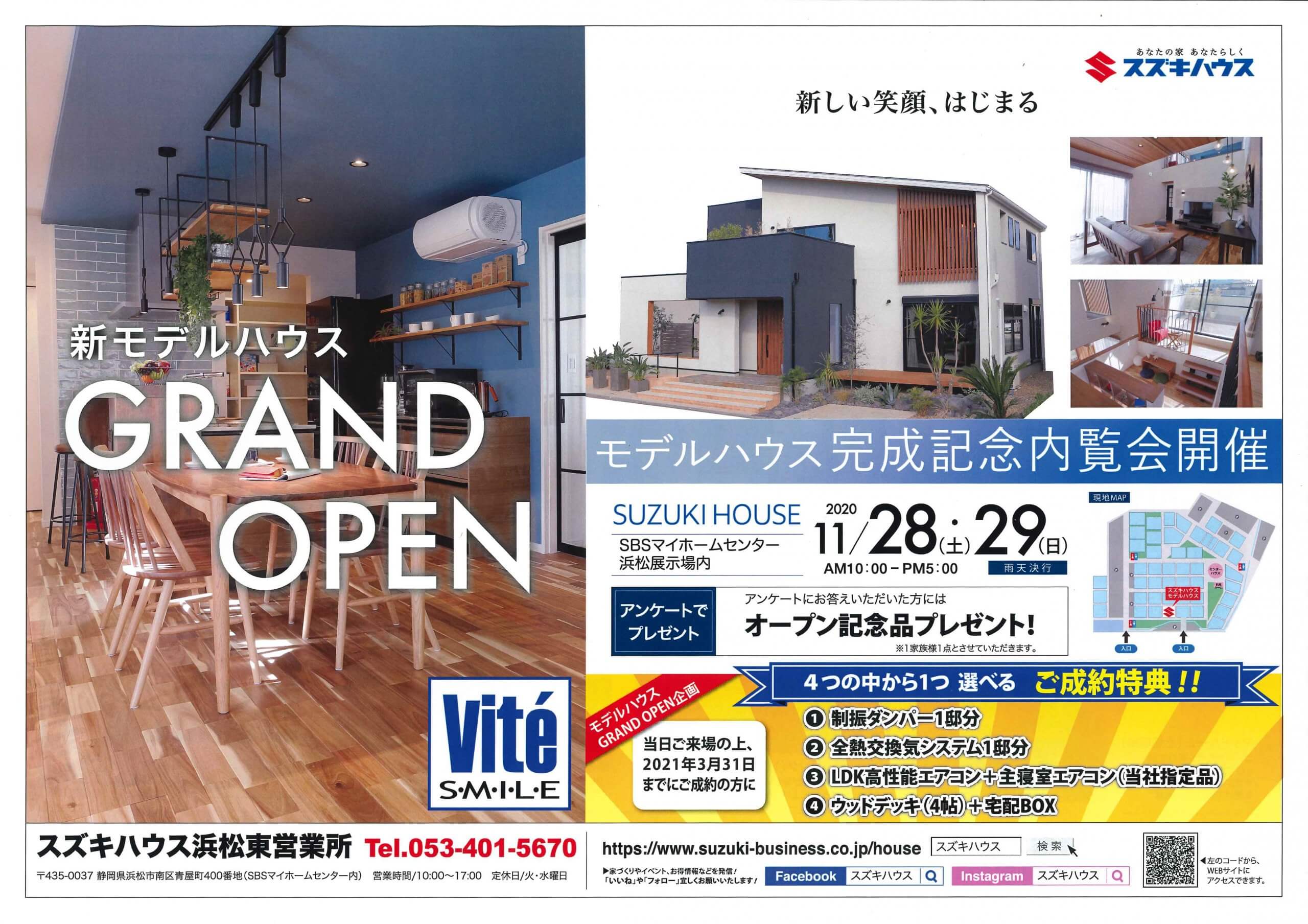 さて、以前よりお知らせさせて頂いておりました、SBSマイホームセンター浜松展示場内の新モデルハウスが11月28日(土)、11月29日(日)に