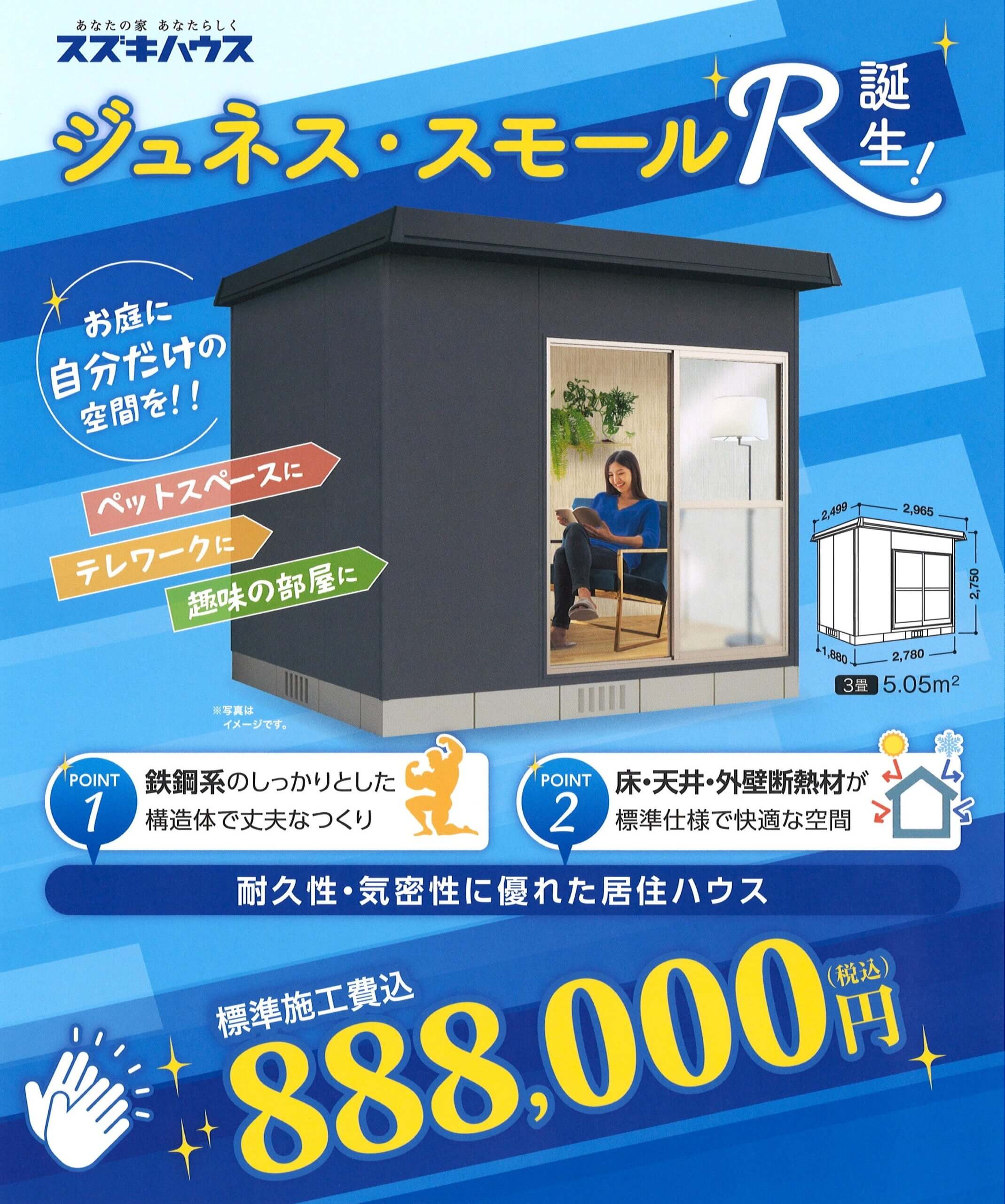 スズキハウスのジュネススモールシリーズは、強くて安心できるの鉄骨構造体!