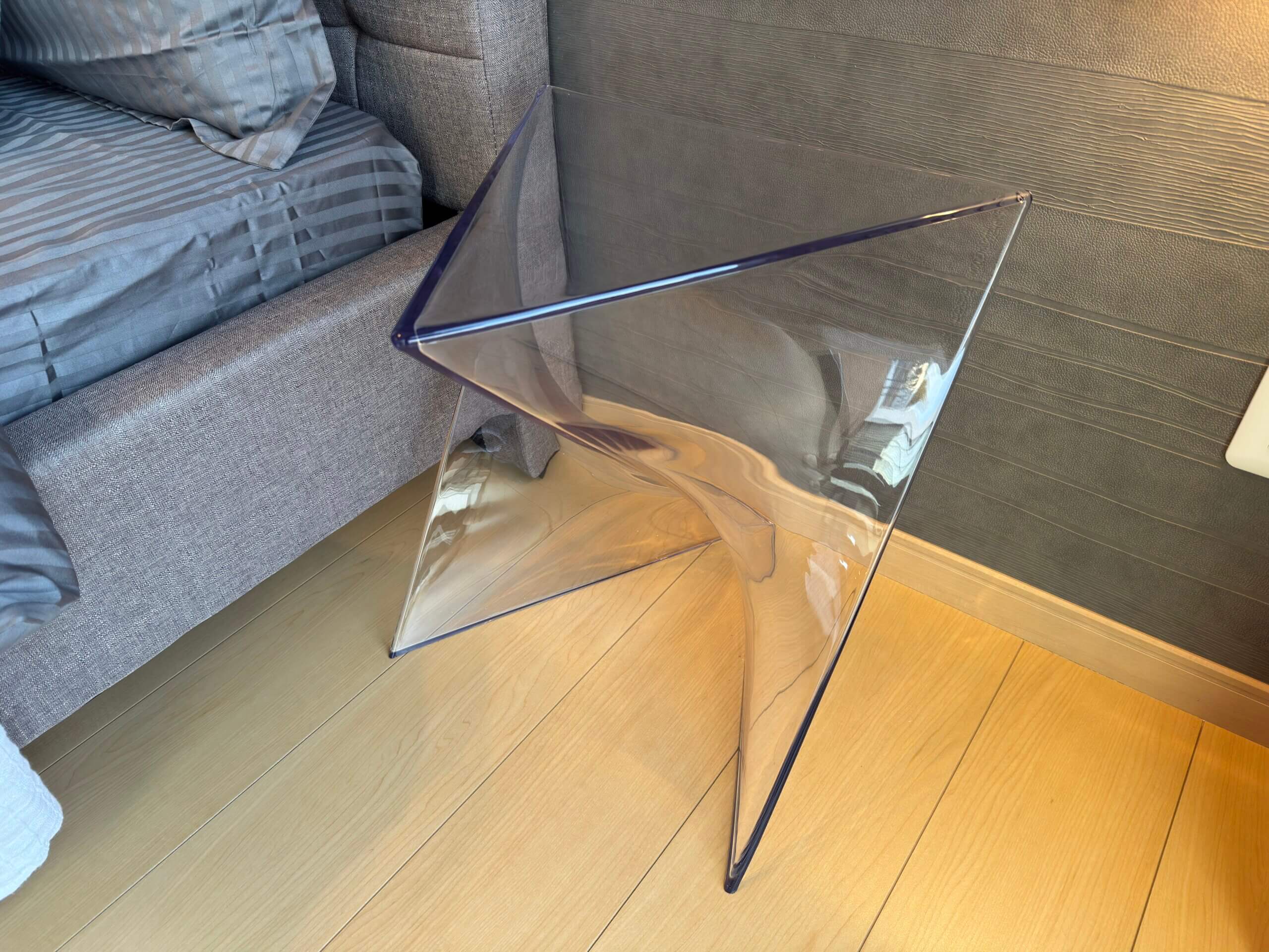 ベッドサイドのテーブルです。芸術品のような品で上に物を置くのがもったいないと思えるデザイン。他の展示場ではなかなか見られないと思います。