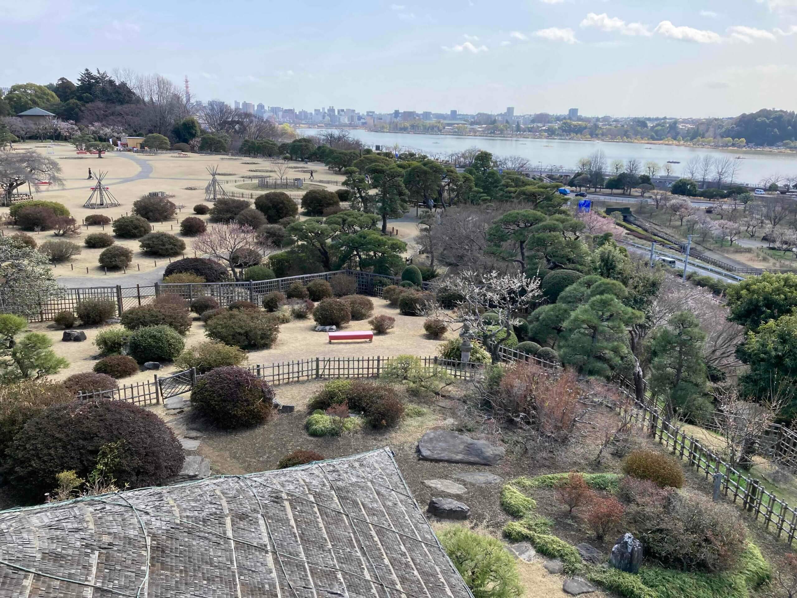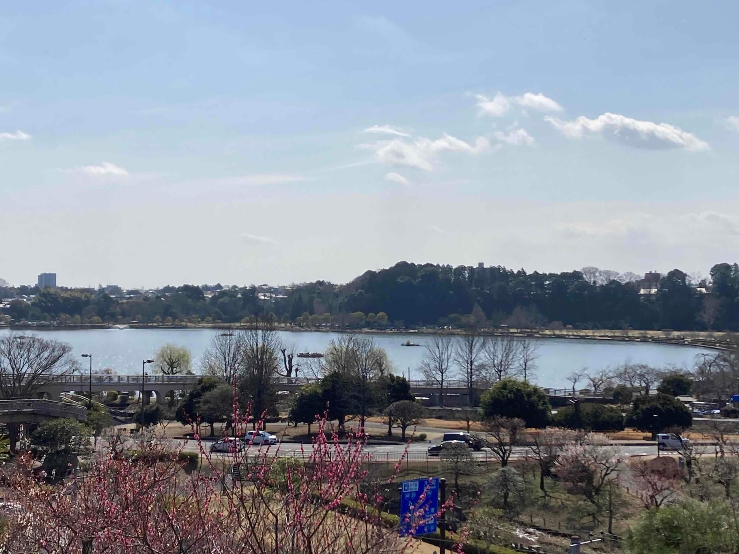 偕楽園から千波湖が見えます。