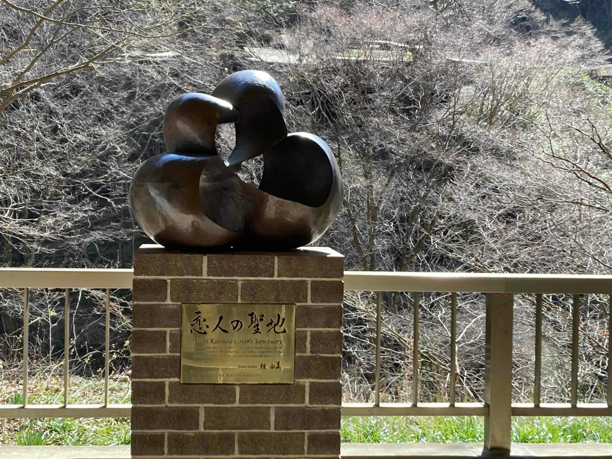 滝のある大子町の鳥「オシドリ」をモチーフにしたこのモニュメントは「恋人たちの聖地」と呼ばれ、恋愛効果が期待できるパワースポットなのだそうです。
