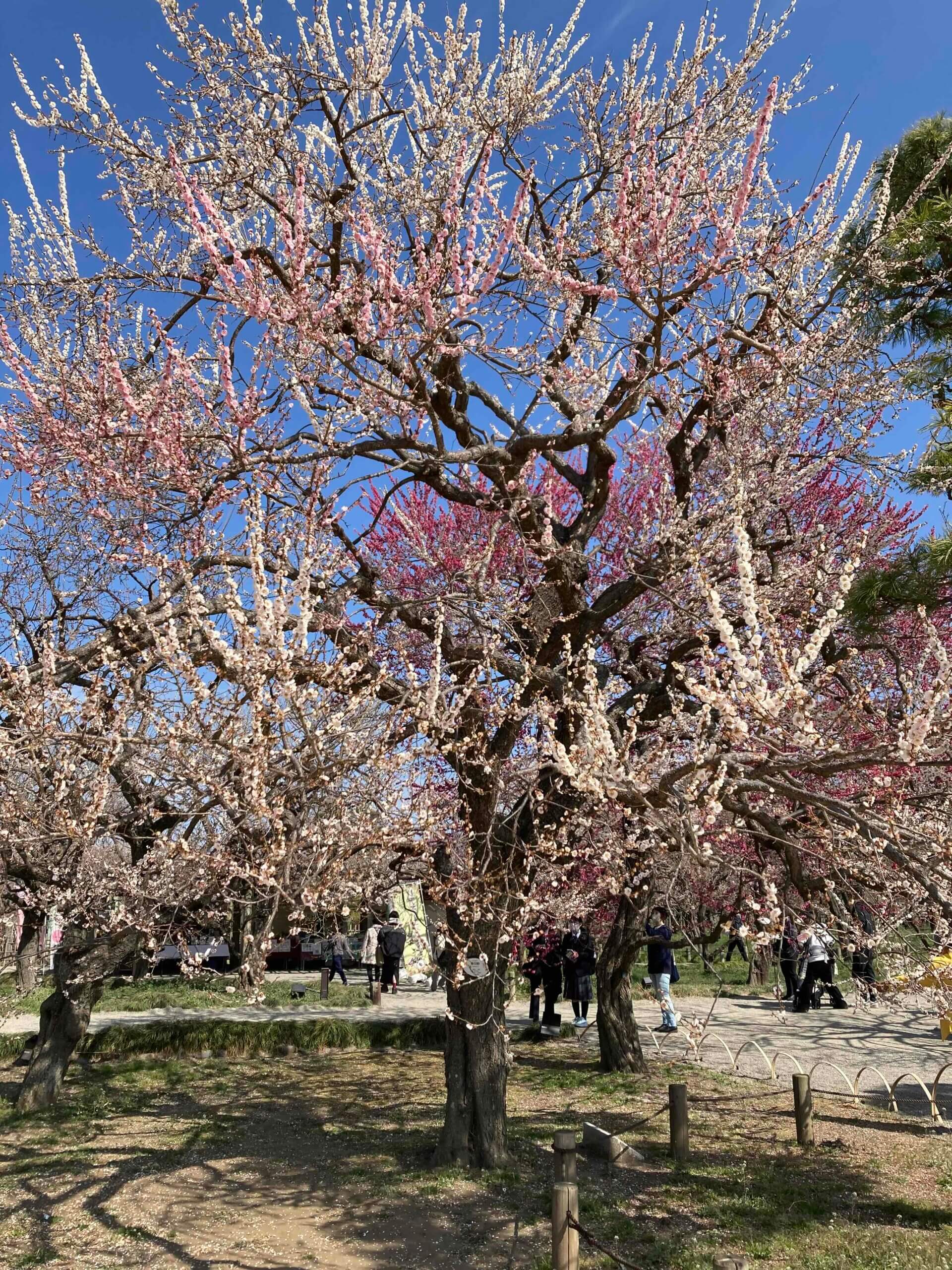 私も今まで梅の花をじっくりと鑑賞することはありませんでしたが、訪れた水戸の偕楽園で白、薄ピンク、ぼたん色と美しいグラデーションを見せてくれる花を見て、ひっそりと咲いて散っていく梅のいじらしさを感じました。