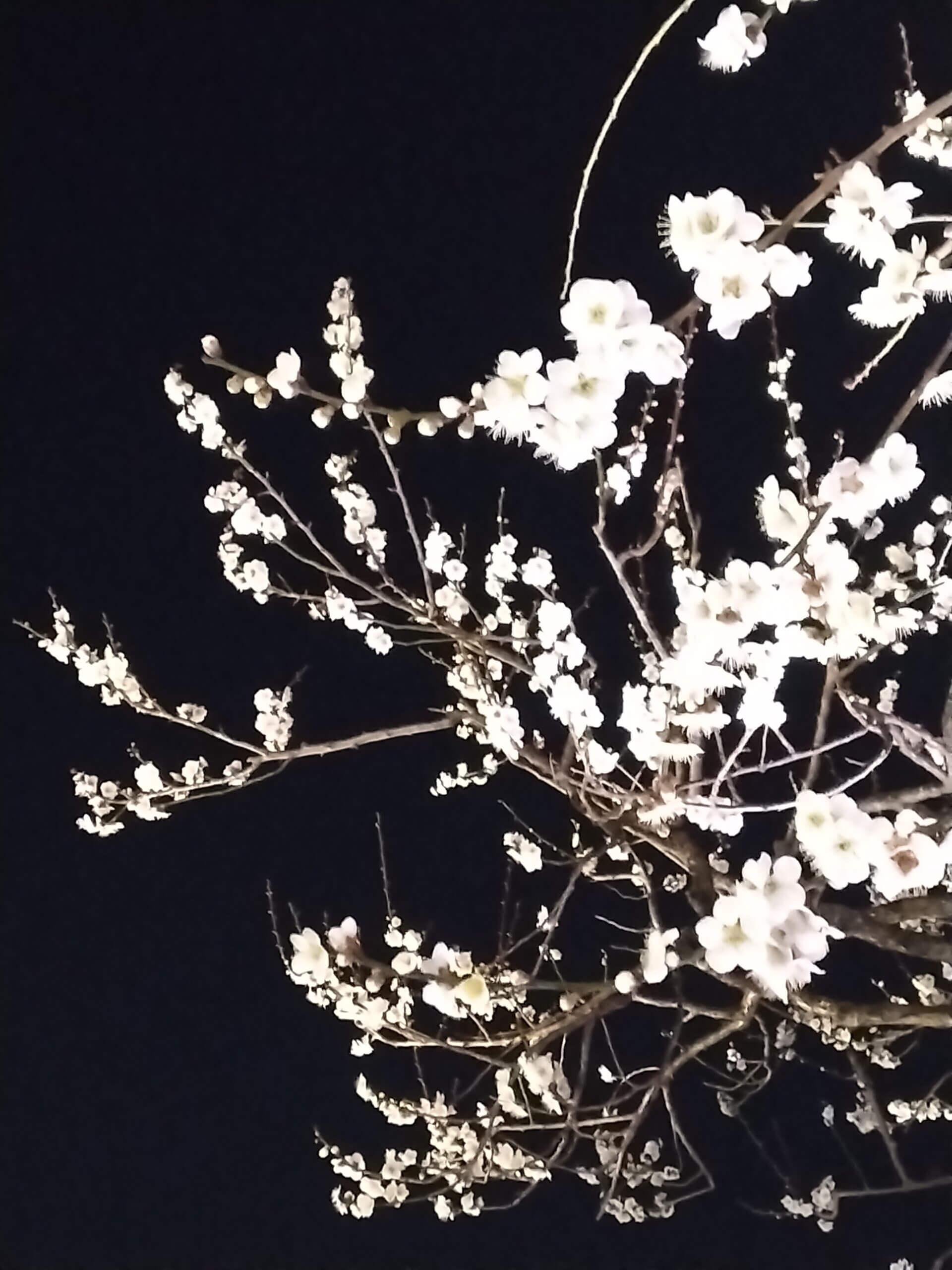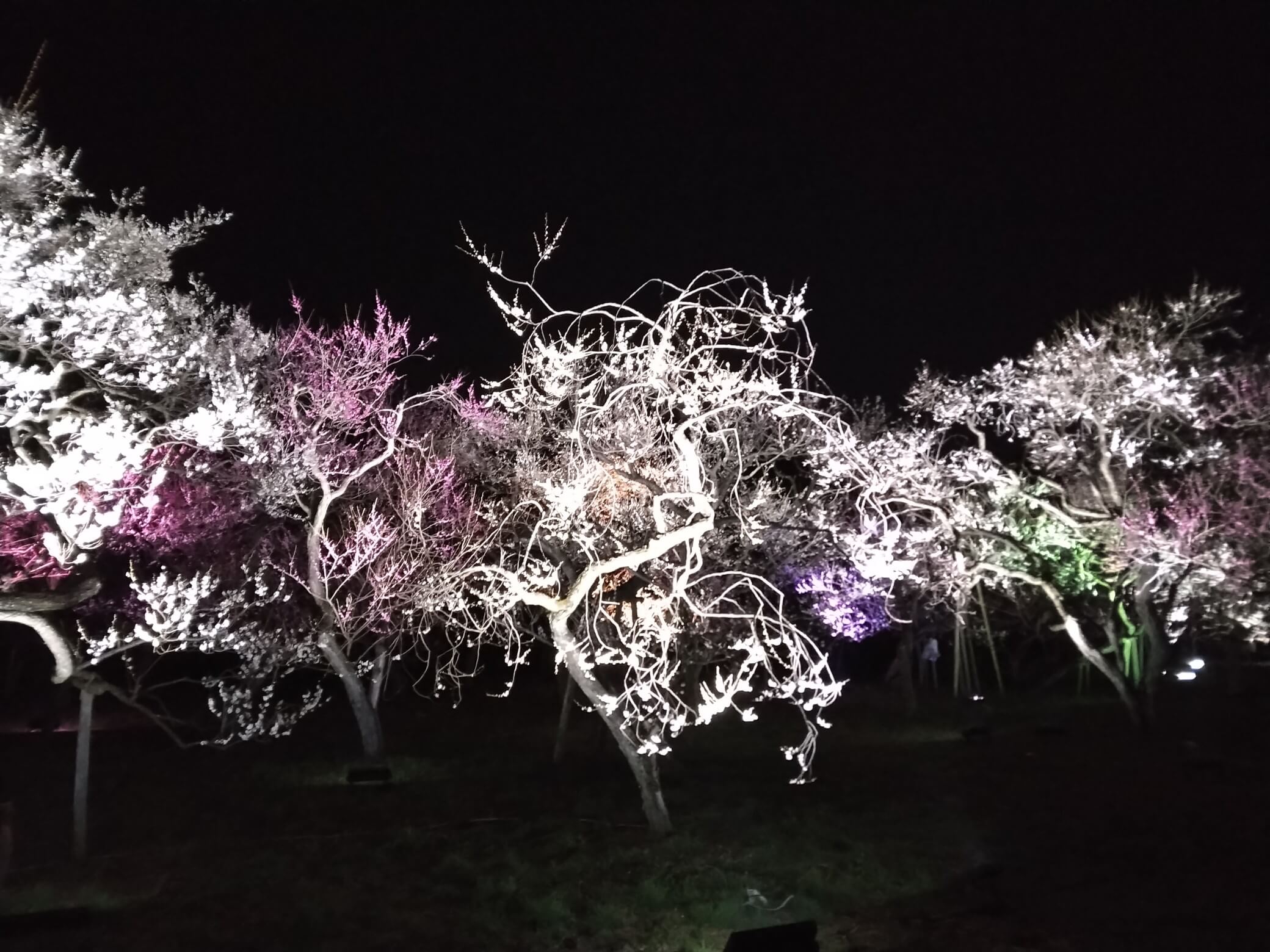 昼間見る梅の花も綺麗ですが、ライトアップされた夜の梅も素敵でした。