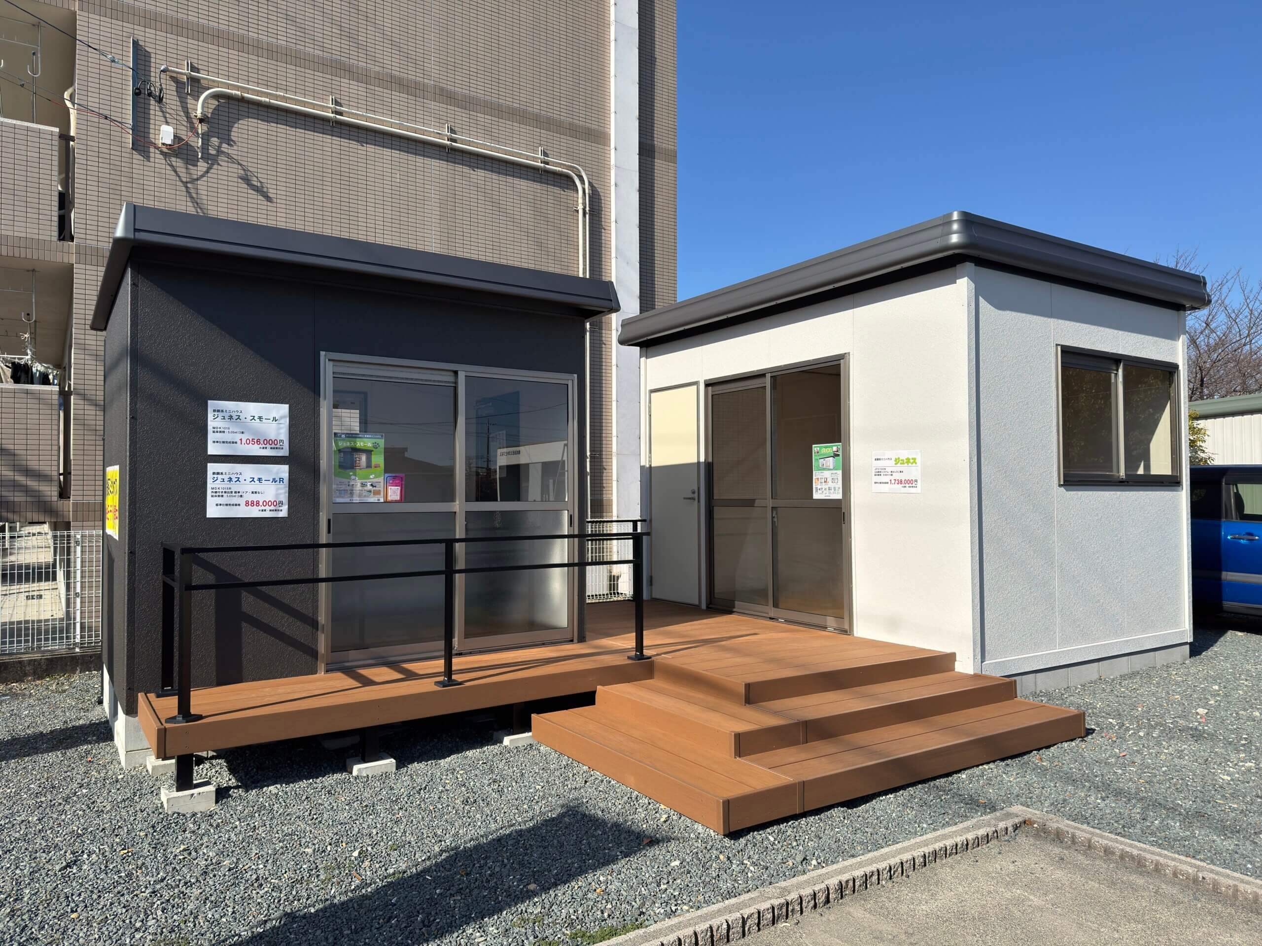 スズキハウス高丘営業所ではミニハウスのフラッグシップ「ジュネス」と「ジュネス・スモール」の2機種が同時に見られる静岡県で唯一の展示場となっております。どちらもモデルチェンジ後の最新機種となっております。