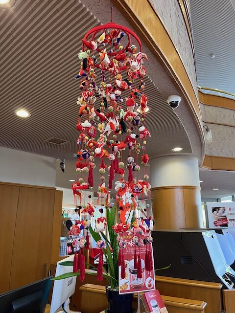 色彩豊かなつるし飾りはフロントに設置しました🎎✨