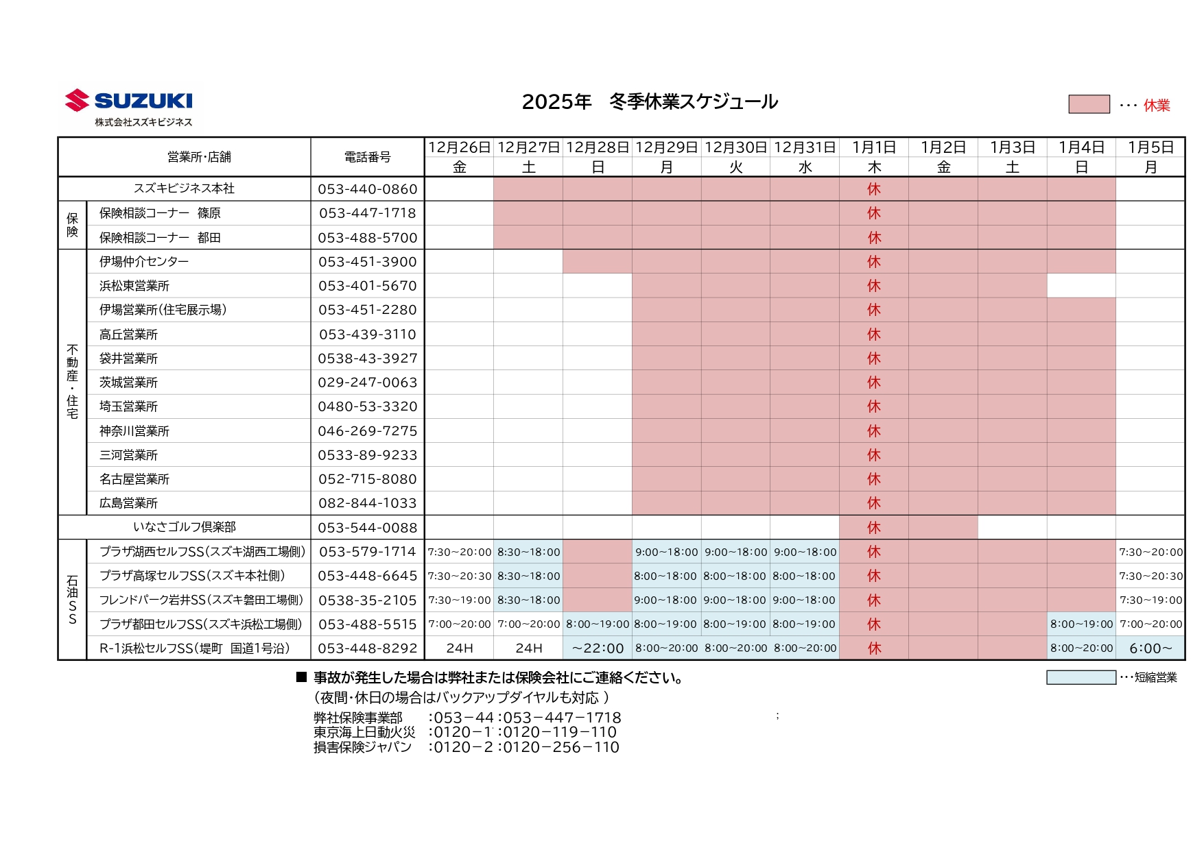 休業中にいただきました資料請求ならびにメール等でのお問い合わせは、2026年1月5日(月)以降の対応とさせていただきます。